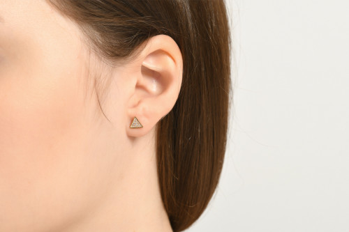 14 Ayar Altın Taşlı Üçgen Tek Küpe