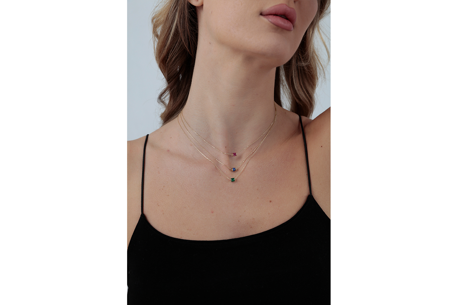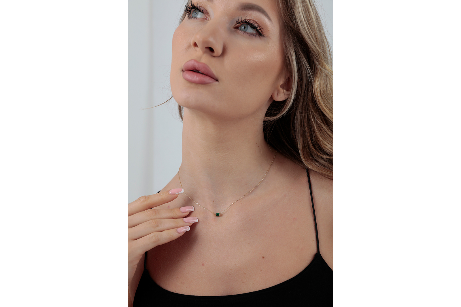 14 Ayar Altın Yeşil Baget Taşlı Silindir Kolye