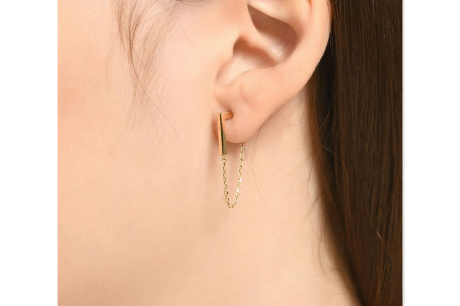 14 Ayar Altın Zincirli Tek Küpe